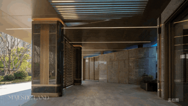 大门直接彰显小区整体的定位,奢侈结合金属,体现出了很强烈的隐奢感。