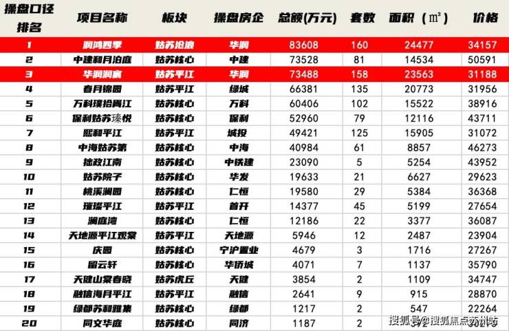 1-10月,姑苏区累计项目销售中,华润操盘的项目项目分别获得第一和第三。