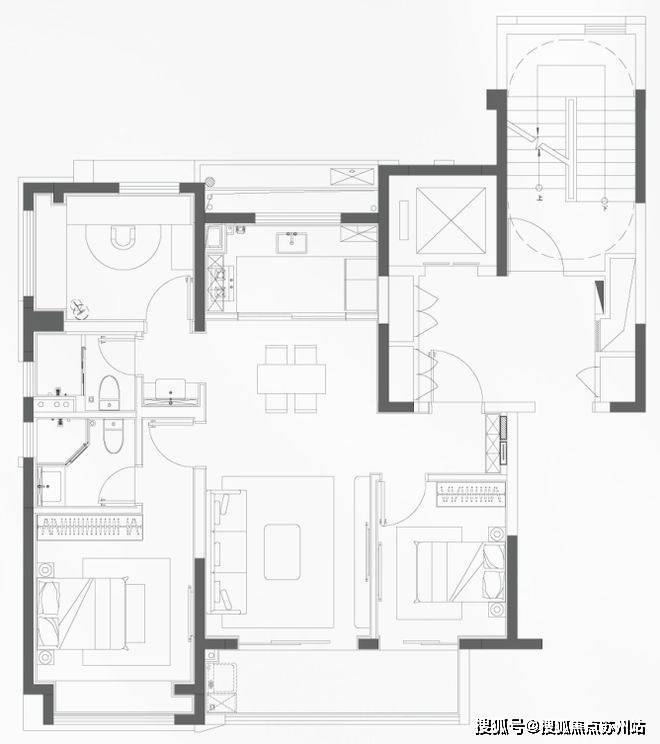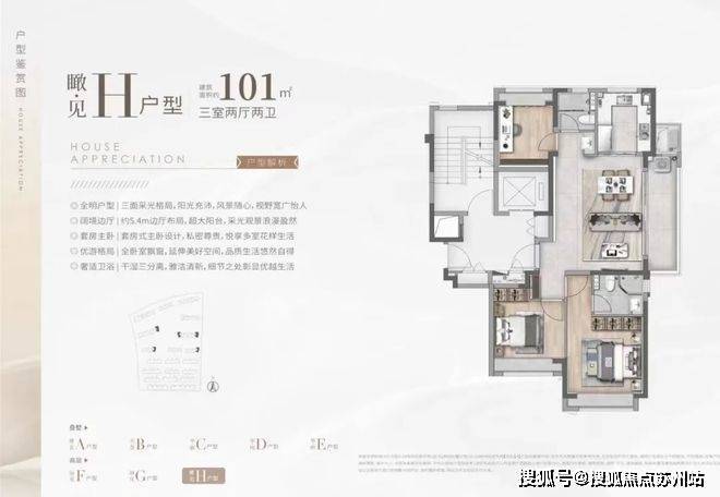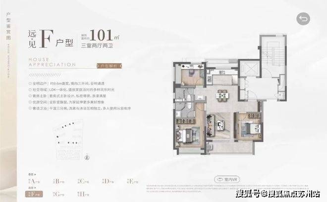 上海·华发海上都荟,建面约99㎡的F和G户型都是市面上备受认可的三房两厅两卫得飞机经典款户型。