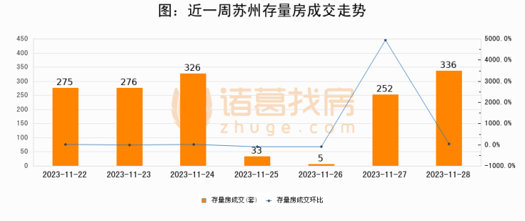 从存量房来看,2023年11月28日苏州存量房单日成交336套,比昨日增加84套,环比上涨33.3%。从近一周存量房成交来看,苏州存量房日均成交套数为214套,11月28日单日成交336套,高于近一周平均水平57%。