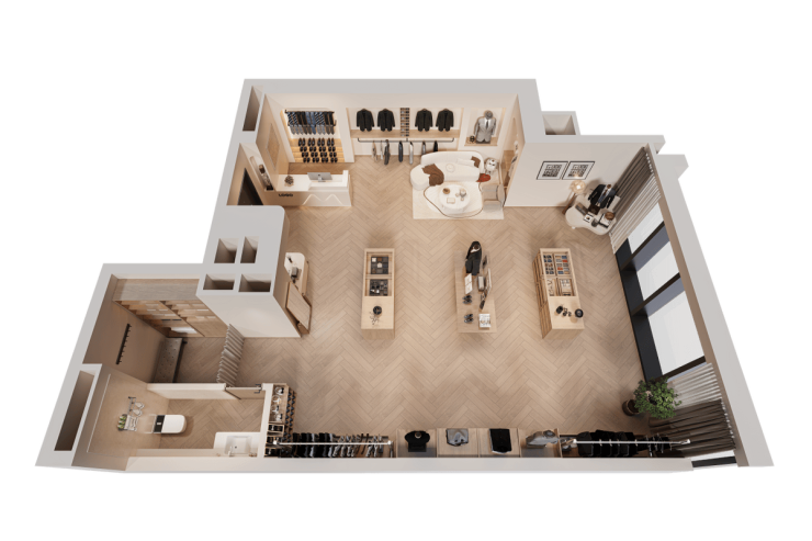 ▲建面约44㎡及49㎡经营场景-西装店