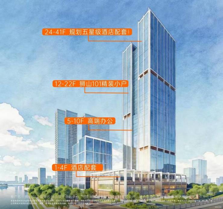 龙湖·狮山101绝非孤零零的一栋楼,而是约70万方城市地标综合体的一部分,更是星级酒店上盖的精装小户。