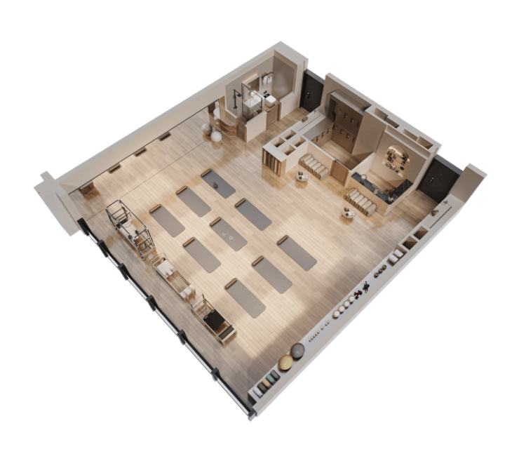 ▲三间建面约44㎡经营场景-瑜伽室