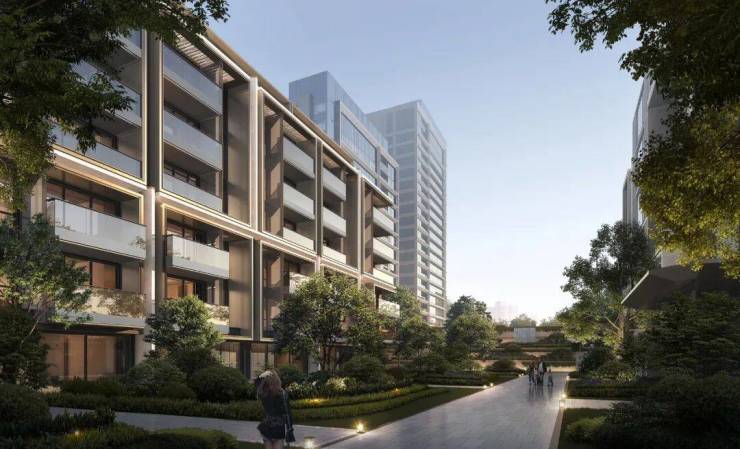叠墅与高层呈东西向排布,彼此“错身而居”,更像是两个独立组团.避免了传统市中心叠墅“被高层俯瞰”的窘境,私密性更强.
