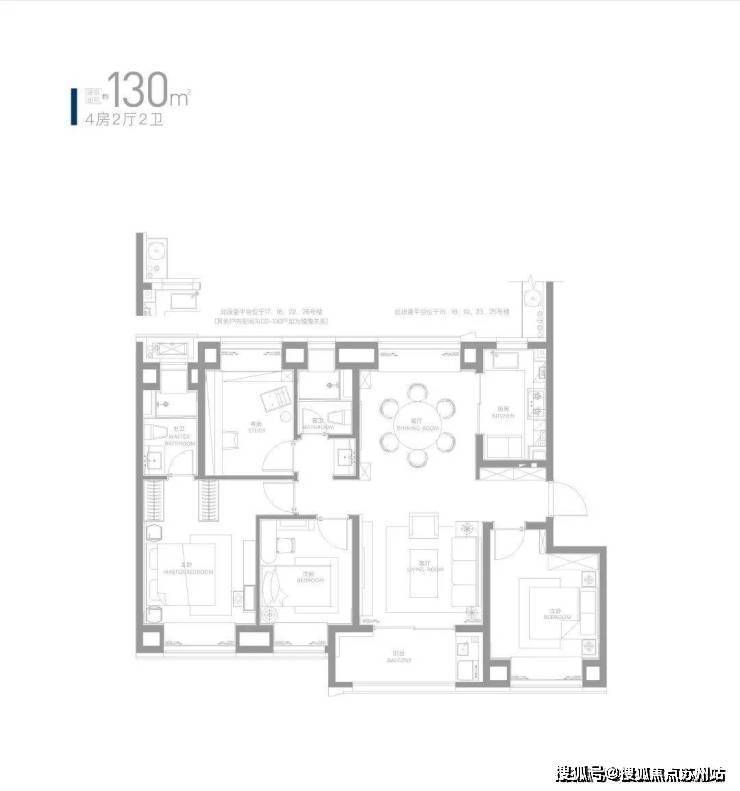 约130㎡四房同样是楼王位置,约13.5米整体面宽,享受开阔景观视野的同时兼顾实用;