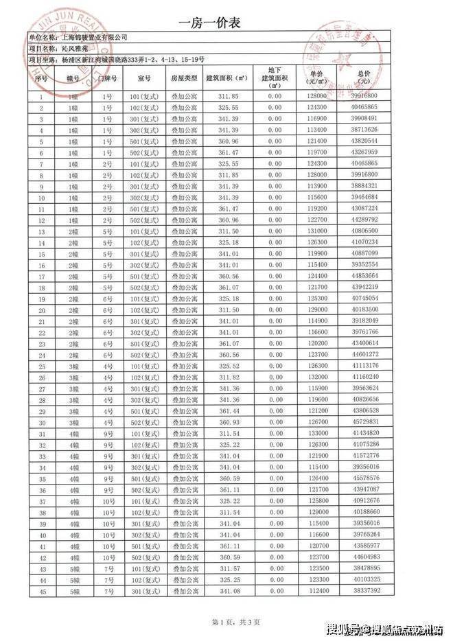 沁风雅苑一房一价表