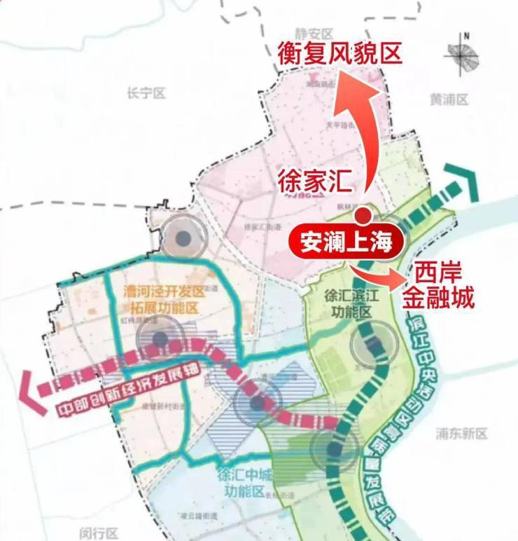 根据徐汇“十五五”规划,安澜上海身处徐汇滨江功能区内,同时向北串联衡复历史风貌区与徐家汇两大核心板块,承担着区域中心枢纽的重要使命。