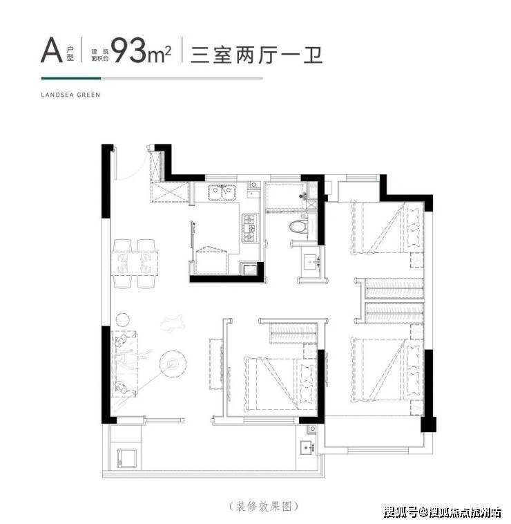 93㎡三房:约215万/套