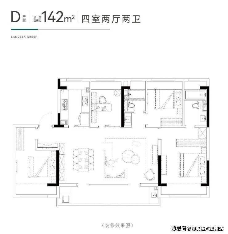 精装标准:全精装交付,配置朗诗"自由方舟"科技系统(恒温、新风、湿度控制等)