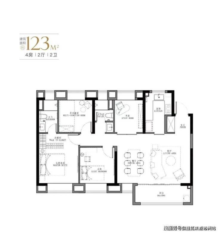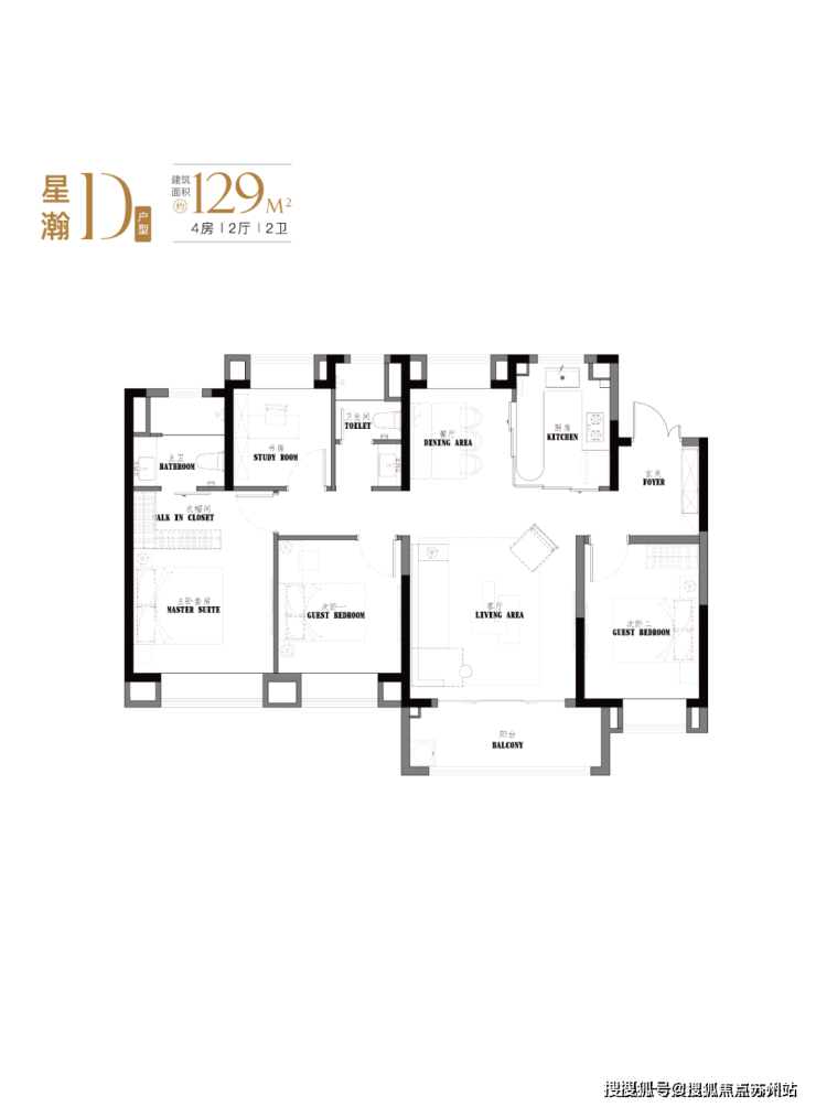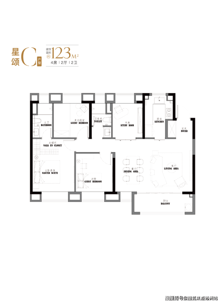 建面约123-129㎡真四房,这个户型的南向面宽和尺度感堪比一般的别墅。