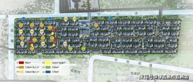 产品为建面约98㎡、124㎡、126㎡(南/北入户)、126㎡(连接户)、155㎡、172㎡合院。