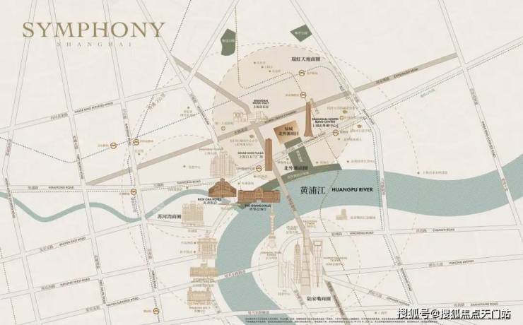 尊踞上海北外滩之心,与陆家嘴天际线从容对望.项目直线距离黄浦江岸仅约900余米(来源百度地图),坐揽北外滩中央公园生态绿肺(规划)及百年外滩人文画卷,是外滩新百年时代无可争议的封面作品.