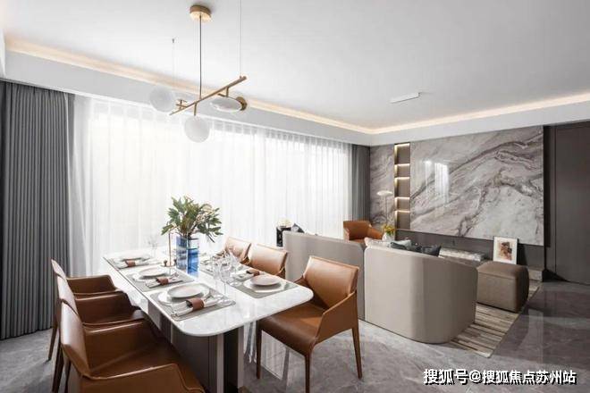 建面约111方户型:建面约111方三房两厅两卫边套户型,极其方正,无论格局还是尺度,都拿捏地恰到好处。豪华餐客厅,摆下收纳柜也不显局促。拥有一整面墙的采光,在家不开灯也很亮堂。户型南卧旁还拥有一个约6.3米的双联阳台,整体户型窗墙比也很大,可以说是难得一见的“阳光房”。
