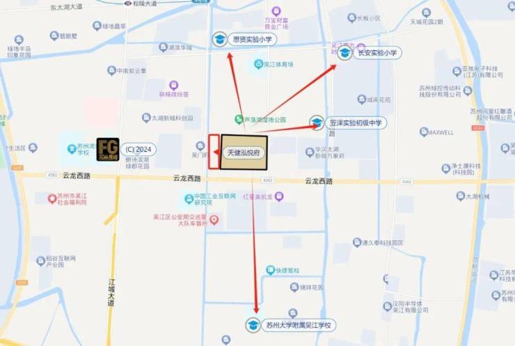 天健泓悦府位于吴江东太湖度假区(太湖新城)龙河路北侧、中山南路西侧 。项目地处苏州湾十字中轴,占位板块核心,尽享繁华配套。