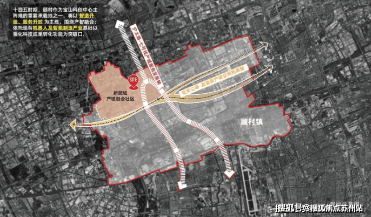 新顾城地处北上海产城融合带和TOD发展轴的交汇处,呈现城市副中⼼级的产城发展轴线:向东联动国际邮轮港、国际科创城,向南沿7号线联动丰翔路、南⼤TOD集群和科创中⼼,定位为上海北部产城相融合、配套⾼标准、宜居多元化的⼤型居住社区,稳稳承接宝⼭产业升级转型和创新发展的海量⼈才和居住需求,逐渐发展为北上海的宜居核⼼区。