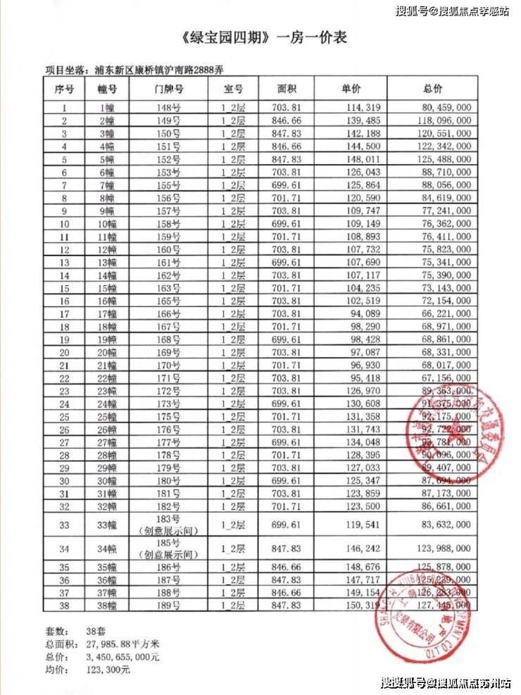 一房一价表: