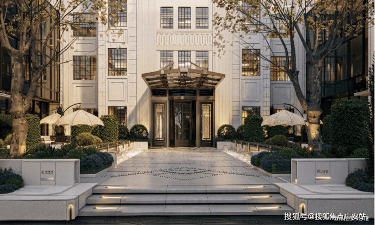 * **建筑立面**:采用四面统一的浅色石材、香槟金铝板与玻璃幕墙,避免了多数项目“南北立面差异”的做法,追求更高品质感。