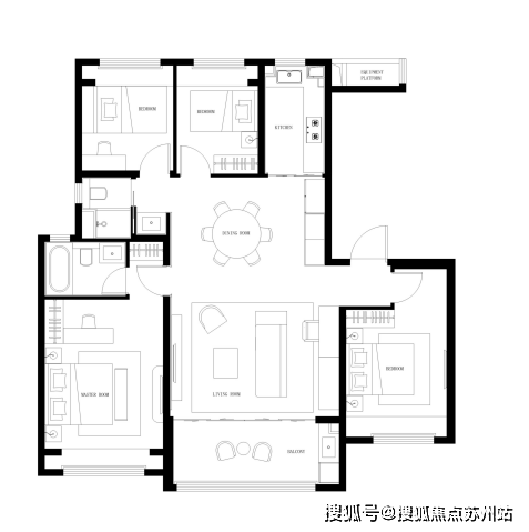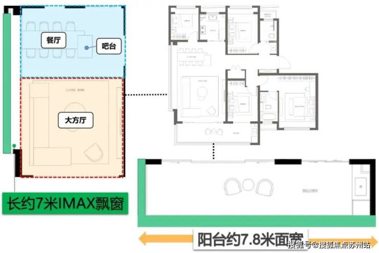 LDKB餐客厨阳台一体,家庭融合方厅,再加上南北双阳台,这样的设计在整个板块内都数一数二。