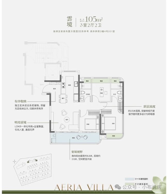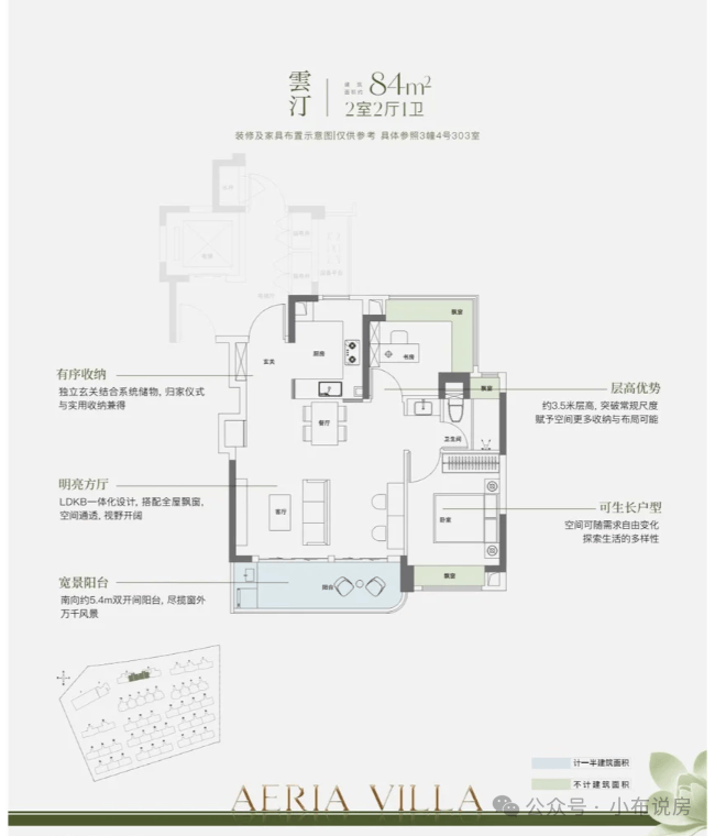项目部分户型曝光,建面约83㎡的2房,一梯两户,层高约3.5米,可做灵活性三房!