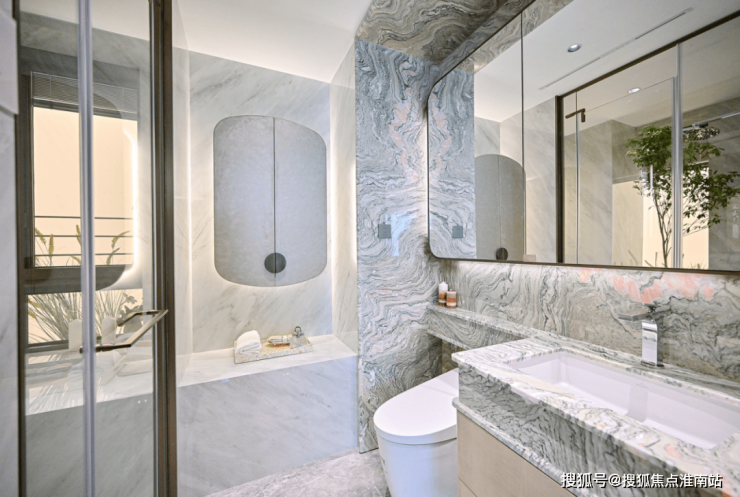 材质质感上,项目同样不吝投入。电视背景墙采用一整面安第斯雪景天然大理石,次卫背景墙套口选用雪山银狐岩板,墙面大面用材为世纪冰玉;从玄关、餐厅到餐边柜,立面均采用影木木饰面,温润质感与高级颜值兼具,每一处细节都彰显品质匠心。