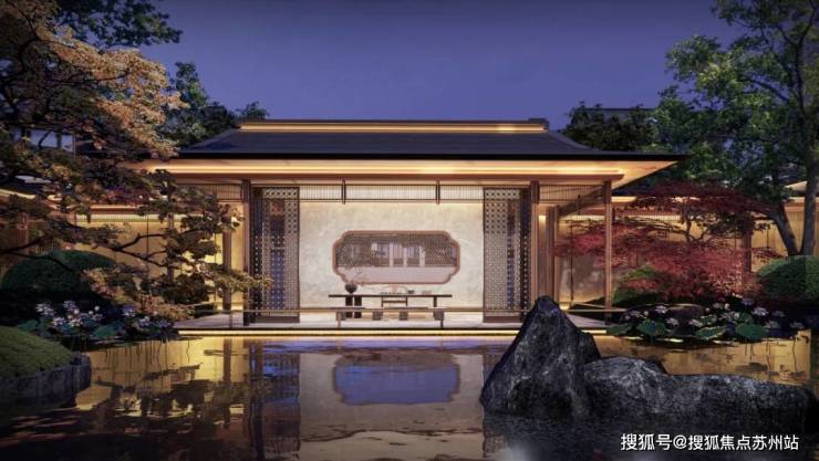 蓝城·湖畔江南里的园冶之法,同样离不开亭的点睛,以宋韵文化为核心,于江南宅园的营造之中,极大还原了古人流连山水、亭台间吟诗作赋的高雅逸兴,而传承传统的同时,又加以革新,取南宋刘松年《四景山水图》亭之形意,巧造园中逸境,让园中主人品味王羲之《兰亭集序》中“仰观宇宙之大,俯察品类之盛,所以游目骋怀,足以极视听之娱,信可乐也”的万千诗意。