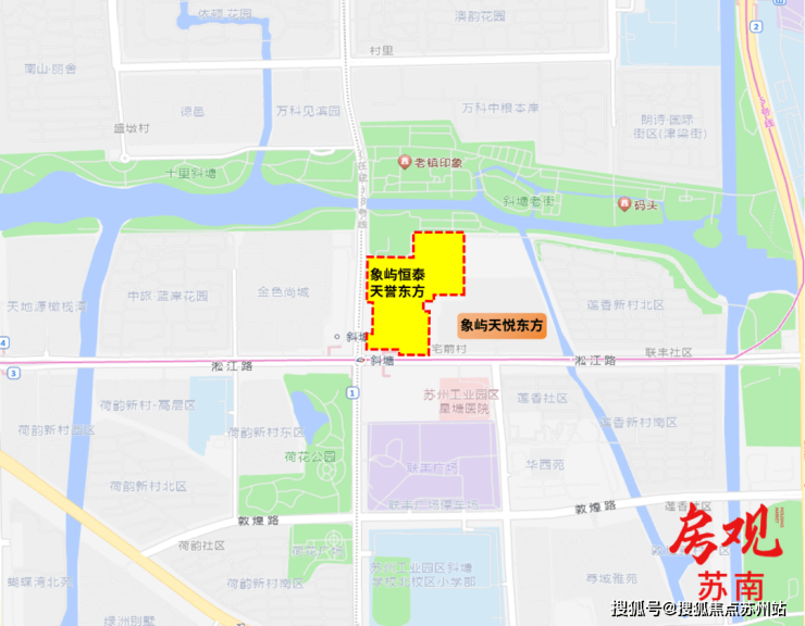象屿恒泰天誉东方, 位于园区斜塘松涛街东、淞江路北。2023年11月1日, 由象屿以总价21.95亿元竞得,成交楼面地价28464元/㎡,溢价率9.48%。