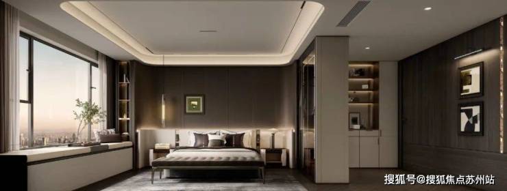 超 50㎡的 总统级主卧套,它采用了市面少见的 双开门设计,自带私密性和尊贵感。