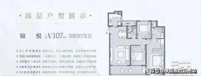 锦悦 高层 107㎡ 户型:三室两厅两卫