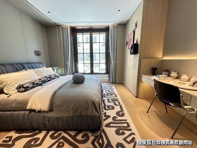【弘安里】售楼处预约咨询热线:400-8123-664三楼整层为主卧套房,样板间设计了双开门入卧室,进入起居空间,样板间选择在这里放一些艺术装饰、设计吧台来彰显主人品味.