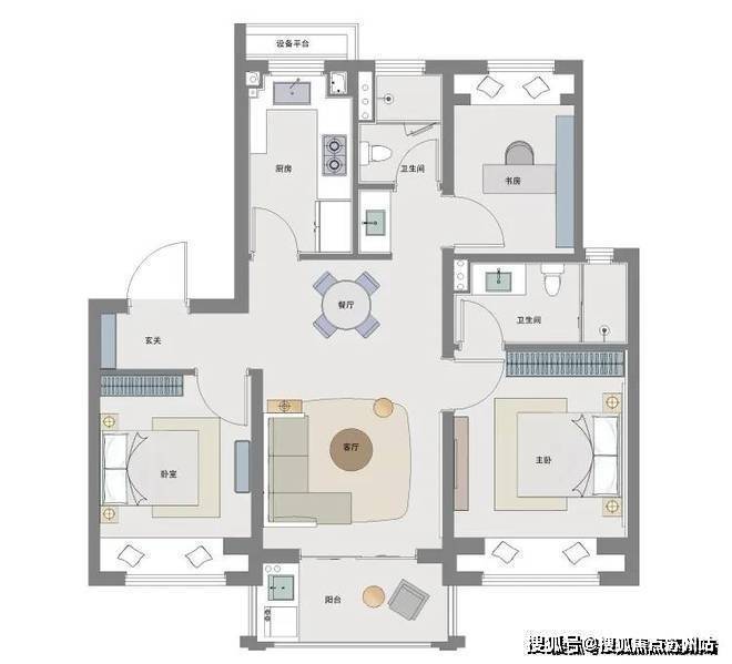1、建面约92㎡做到3房2厅2卫,控制总价的同时将功能性做到了更大化