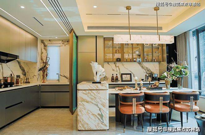 国贸海屿佘山售楼部电话:400-822-8664☎在示范区展示的细节上,注重每一个细节的打磨。入口波浪流线感的飘板雨棚结合精致的贝壳纹吊顶,共同营造入口空间的奢华感。水墨云灰石材与金属嵌套并结合隐藏式泛光灯带,体现出近人尺度细部的精致感。