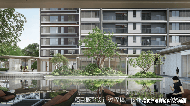 另外社区内部还规划有中庭水景、露天泳池。