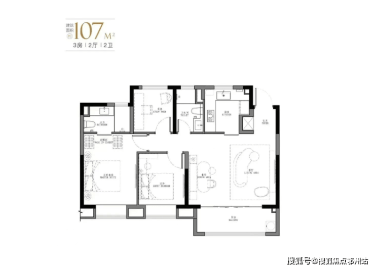 建面约107㎡三房两厅两卫(舒适改善):介于103㎡与129㎡之间的舒适之选,专为追求更高居住尺度的三口之家设计。全明通透户型,南向三开间,采光充足;空间布局合理,动静分区明确,避免生活干扰;主卧套房设计,搭配全景飘窗,延伸观景视野;细节处预留充足收纳空间,提升居住整洁度,总价470-505万。