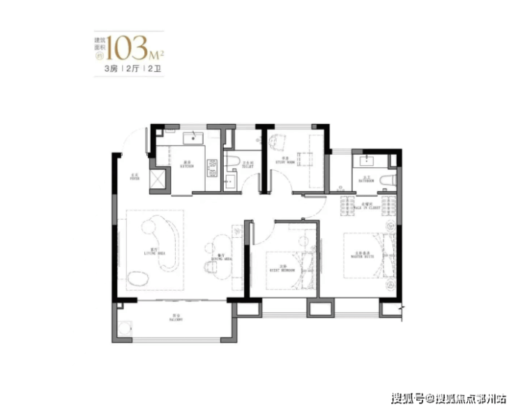 ▫️建面约103㎡三房两厅两卫(爆款户型):项目最受欢迎的“流量王”,改善入门首选,兼具功能性与舒适度。经典南向三开间设计,两间卧室朝南,客厅面宽约3.6米,采光通风俱佳;主卧套房设计,配备独立卫浴空间,保障业主私密尊崇;U字形厨房动线合理,餐厅可从容摆放四人大餐桌;空间利用率极高,完美适配三口之家或三代同堂基础改善需求,总价400-486万即可入主精装三房。