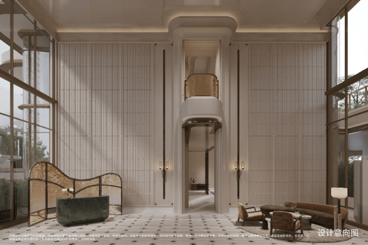 它再现顶豪经典的十字中轴对称布局,归家动线与景观排布层层递进,强烈的秩序感从入园即启。