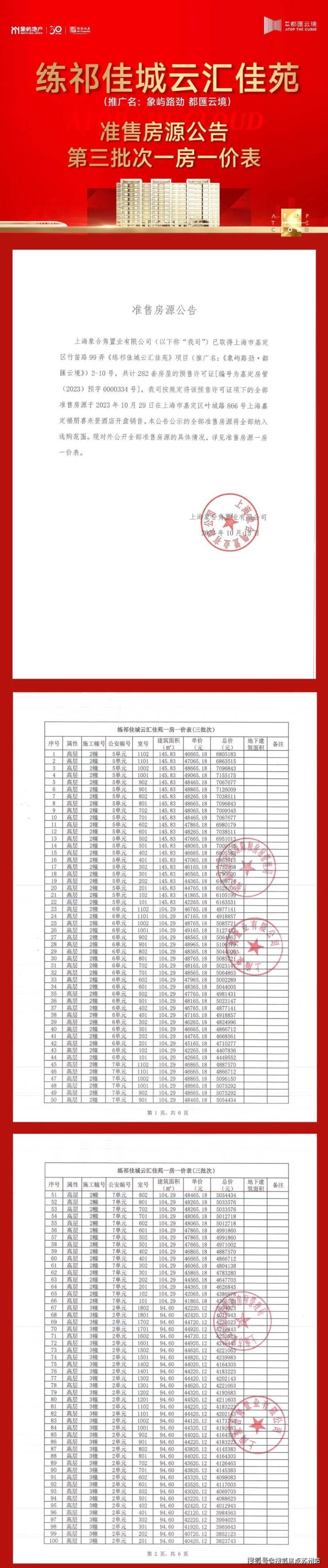 嘉定新城「象屿路劲都匯云境」三期正在热销中!推出建面约95-146㎡三房四房,均价约4.47万/㎡!