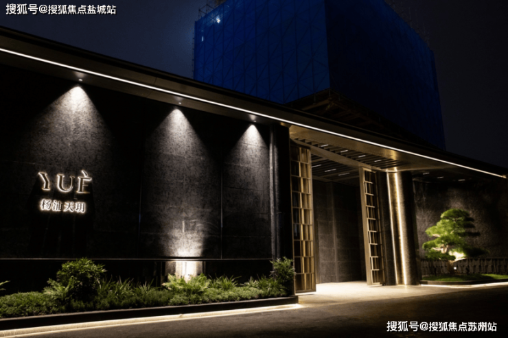 在社区门头上,采用麻省理工学院同款人文高定门头,上海少有的长约35⽶、高约5.1⽶酒店式迎归尺度,并引入价值不斐的名贵黑松、范思哲黑石材与茶色定制铝板,以秀于外隐于内的精神表达,给予每一位业主的尊贵仪式感。