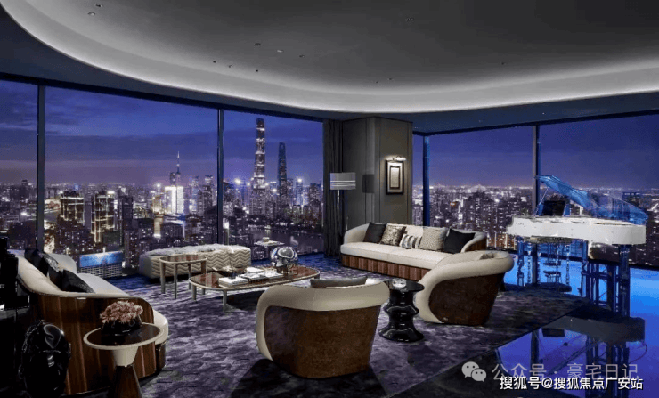 200米高空的无边际泳池连通雪茄吧,水幕投影可实时播放苏富比拍卖现场;业主专属的“云端厨房”可预约米其林星厨上门,宴席菜单通过区块链技术同步至宾客的数字藏品库——在这里,生活与生意、私密与昭示,从未如此浑然天成.