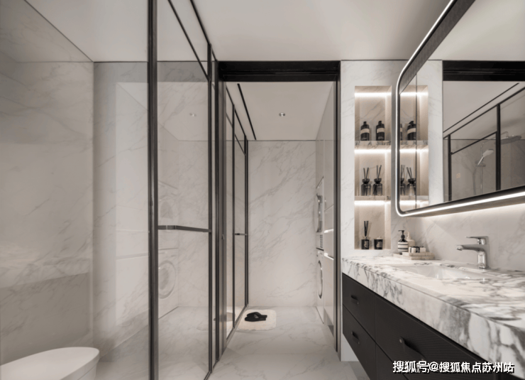 其中客卫空间设计相当惊艳!将洗衣空间融入客卫,做了四分离设计!洗衣空间还有充足收纳空间。