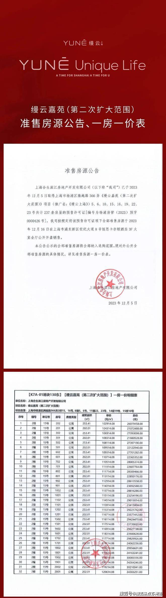 「一房一价表」
