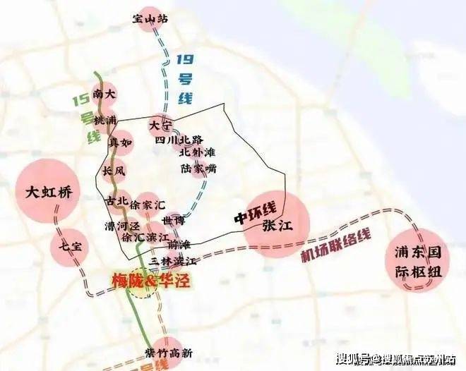 在交通方面,朗拾花语周边15号线(已通车)、19号线(在建中)、机场联络线3轨交汇。其中,项目距15号线虹梅南路站步行仅约400米,一站徐汇;约300米直上虹梅南路高架;19号线换乘直通前滩、上海世博园区;项目南侧银都路越江隧道2024年年底建成后,可直通“浦东金色中环”。