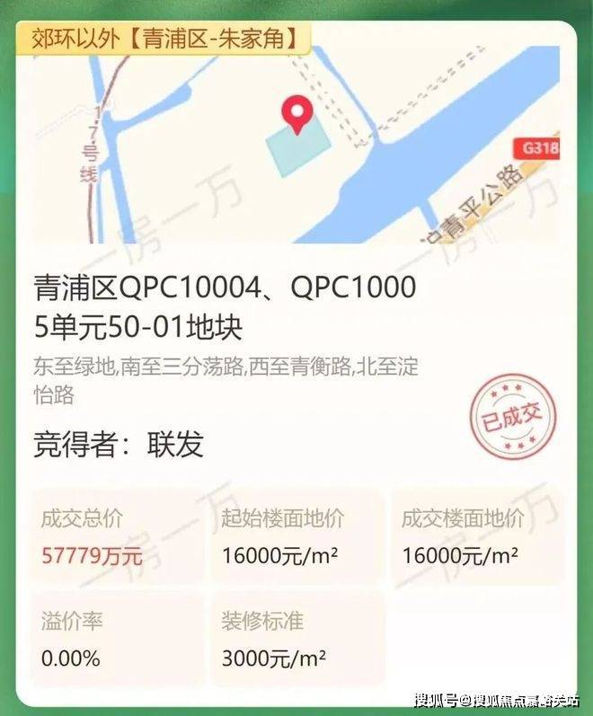 联发时光新澍售楼处电话:400-8123-6647月24日,第六批次土拍首日,联发以总价219480万元竞得青浦区QPC10004、QPC10005单元47-04、49-01、50-01地块,成交楼面板价14925元/㎡.