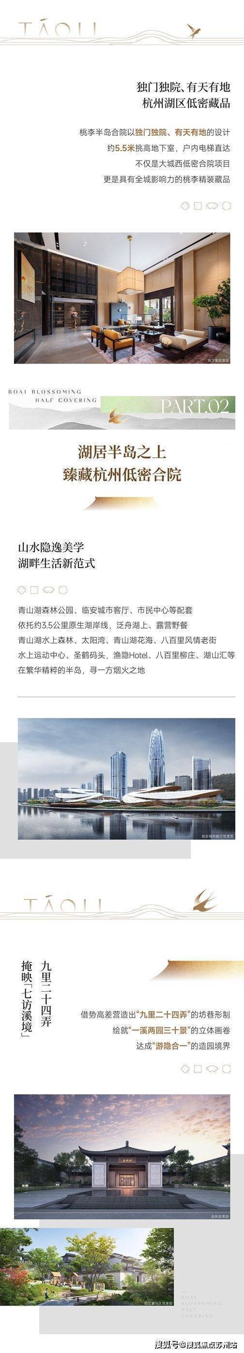 杭州桃李半岛售楼处电话:400-8828-814✔✔【预约热线】桃李半岛售楼处营销中心:400-8828-814桃李半岛售楼处电话/地址☎:400-882-8814(开发商热线)如有问题欢迎来电咨询,专业一对一热情服务,让您用专业眼光去买房。建面约160-180-200-270m²,一线青山湖景 新中式合院,地上3层+约5.5m地下空间,装修情况:精装交付。
