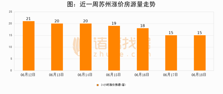 根据诸葛找房数据显示,苏州24小时涨价房源量为15套,较06月17日持平。