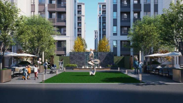 一条气韵恢 弘的中央景观礼仪轴,以赫内拉里菲宫花园为灵感蓝本,奠定了归家的庄重序曲;严谨的对称布局与 “一纵三横”的景观脉络,则在秩序中衍生出无尽的探索趣味。