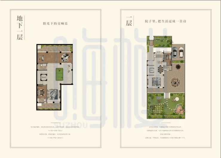 2.双拼别墅:双拼别墅户型建面约383-394㎡,院子约383-394㎡,拥有独立入户和私家花园,尊贵私密。