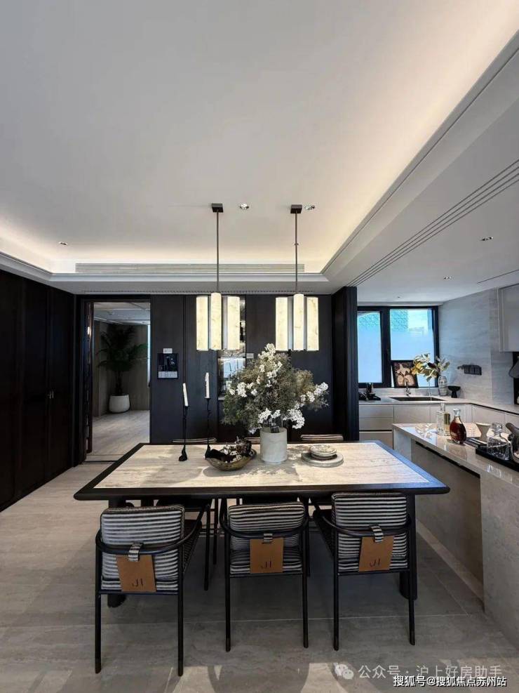 地面同样选用更昂贵却更美观的大块岩板,这种反常规的选择,不仅是视觉上的震撼,更以岩板的特性宣告着美观与实用的和解。