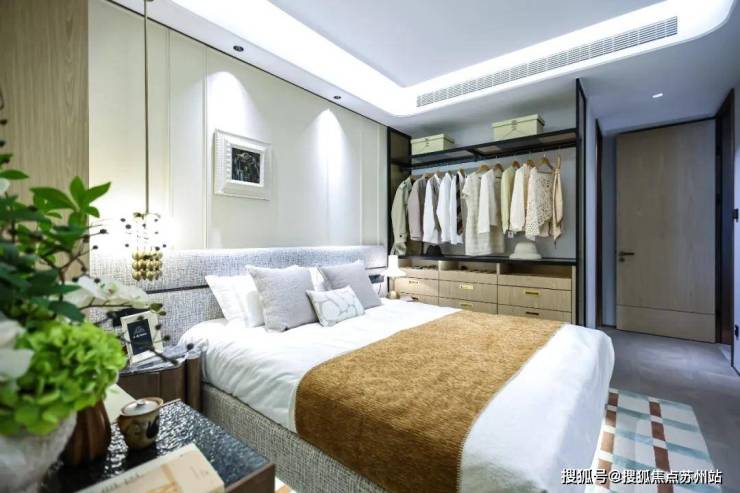 上海闵行安高申陇院售楼处电话☎:400-8123-664(预约看房热线)客厅和卧室无主灯设计,再叠加弧形吊顶,既打造了柔和、温馨的氛围,又能保证较好的视觉空间感。