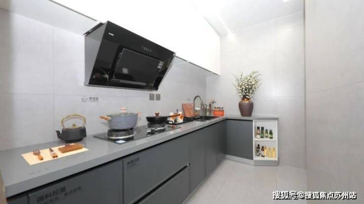 厨房同样颇具宋氏韵味,色调上,以灰、白、黑为主,沉稳又雅致,契合宋式美学追求的简洁、内敛。