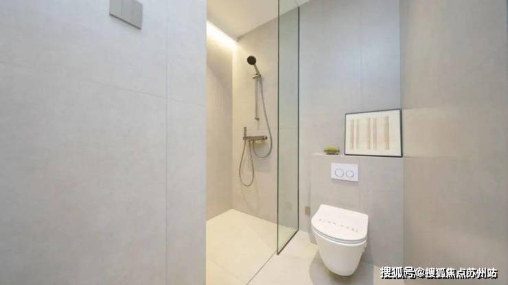 湿区极简现代,以灰色系瓷砖铺陈墙面与地面,营造出沉稳、冷静的氛围。色调统一协调,视觉上简洁大方,给人利落、高级之感。墙面上安装的简约装饰画,打破灰色的单调,让空间在简洁之余不失温馨与生机。